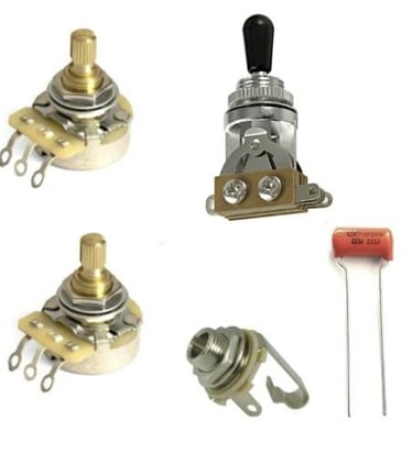 Sostituzione di singolo componente elettronico generico come potenziometro, jack o condensatore, escluso materiale.