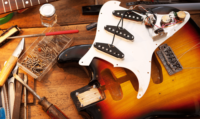 Pulizia e nutrimento tastiera, pulizia di fondo strumento, calibratura capotasto,regolazione truss rod, regolazione ponte, ottave, controllo e disossidazione elettronica,serraggio elementi allentati) escluse corde.